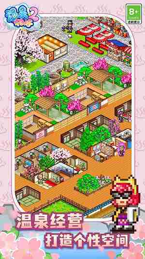 《温泉物语2》是一款模拟经营温泉旅馆的游戏。。玩家可以建设客房和店铺,,,,招揽客人,,,挖掘温泉,,,,打造专属温泉乡,,成为受全世界瞩目的温泉旅馆。。通过游戏,,,,让大家活力十足地面对明天吧!!
