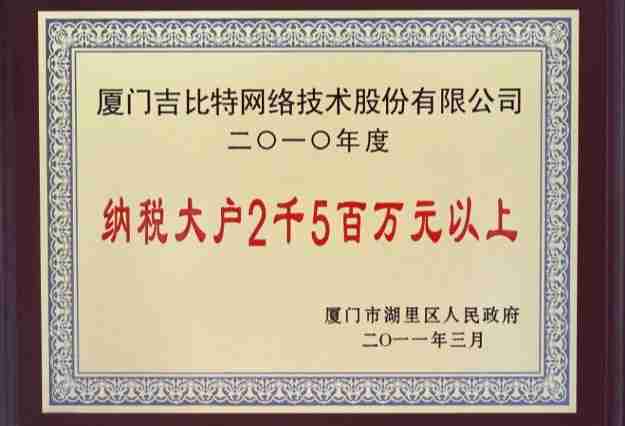 日前,,公司被厦门市湖里区人民政府授予了“2010年纳税大户”的荣誉称号,,,,充分体现了公司一贯合法纳税、、、诚信经营的良好企业社会公民行为。。。