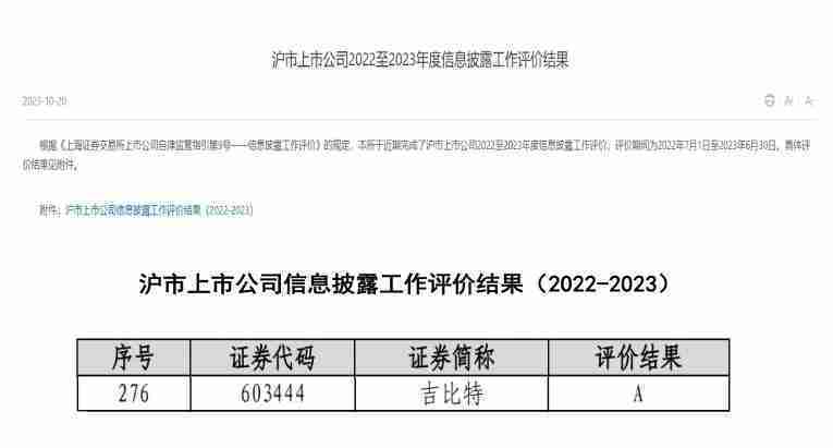 近日,,,上海证券交易所发布2022-2023年度信息披露工作评价结果。。。。918.com(股票代码:::603444)凭借规范的公司治理、、、、高质量的信息披露以及良好的投资者关系管理再次荣获信息披露工作A级评价,,,,公司连续两年获此殊荣。。。。